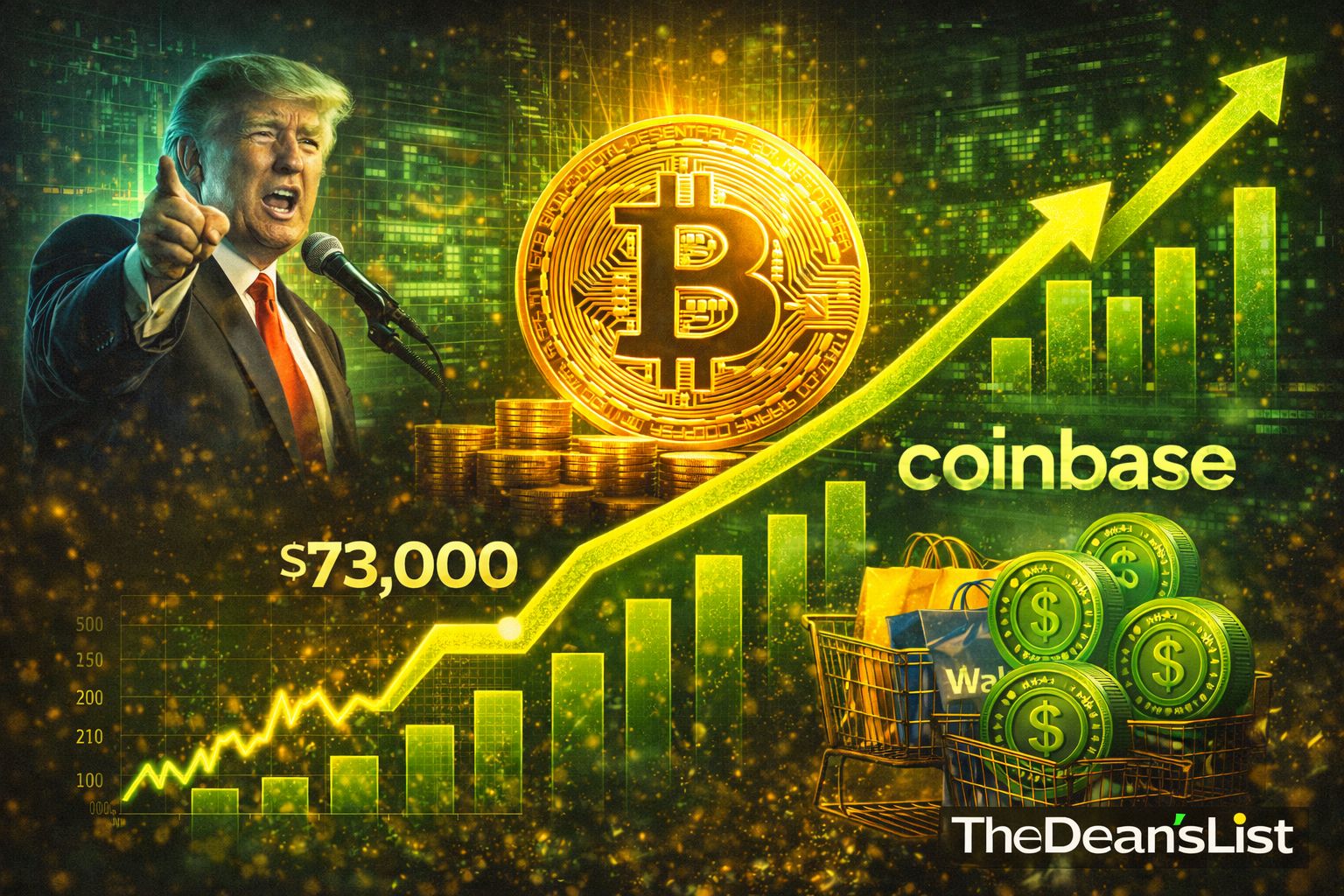 Bitcoin: ~$73,000 (quietly rallying as Trump backs crypto stablecoin legislation)
